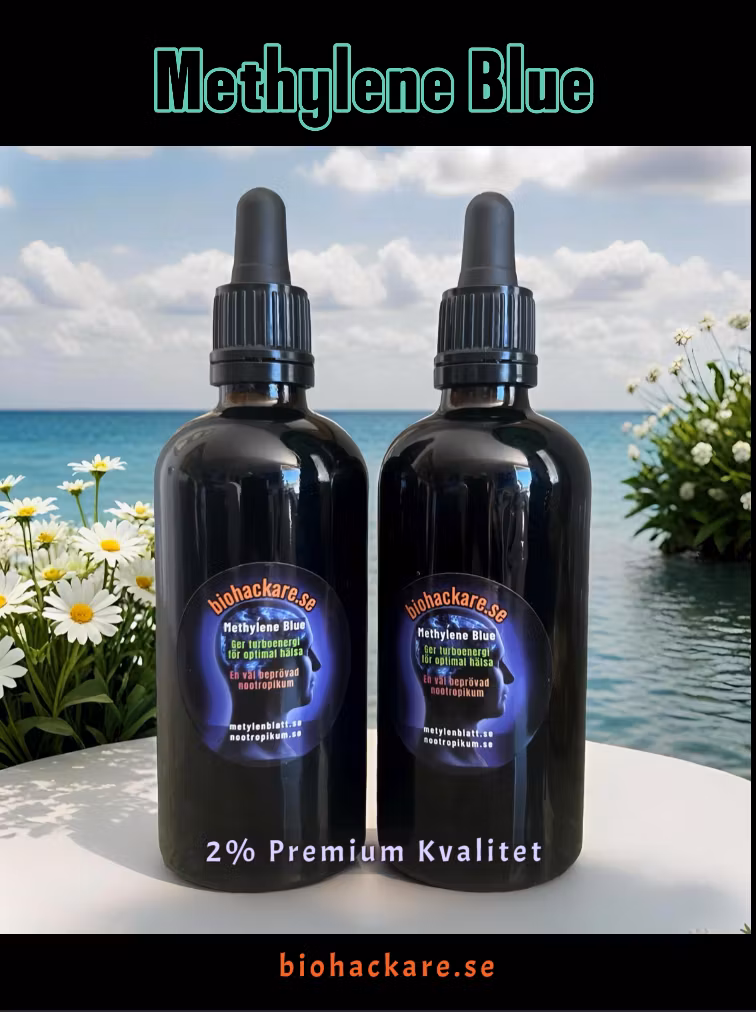 2 st 100 ml 2% Metylenblått/Methylene Blue (USP Premium Kvalitet) plus 10 ml travel size. Du får även en Tesla frekvensladdad Beef Tallow läppbalm som extra gåv
